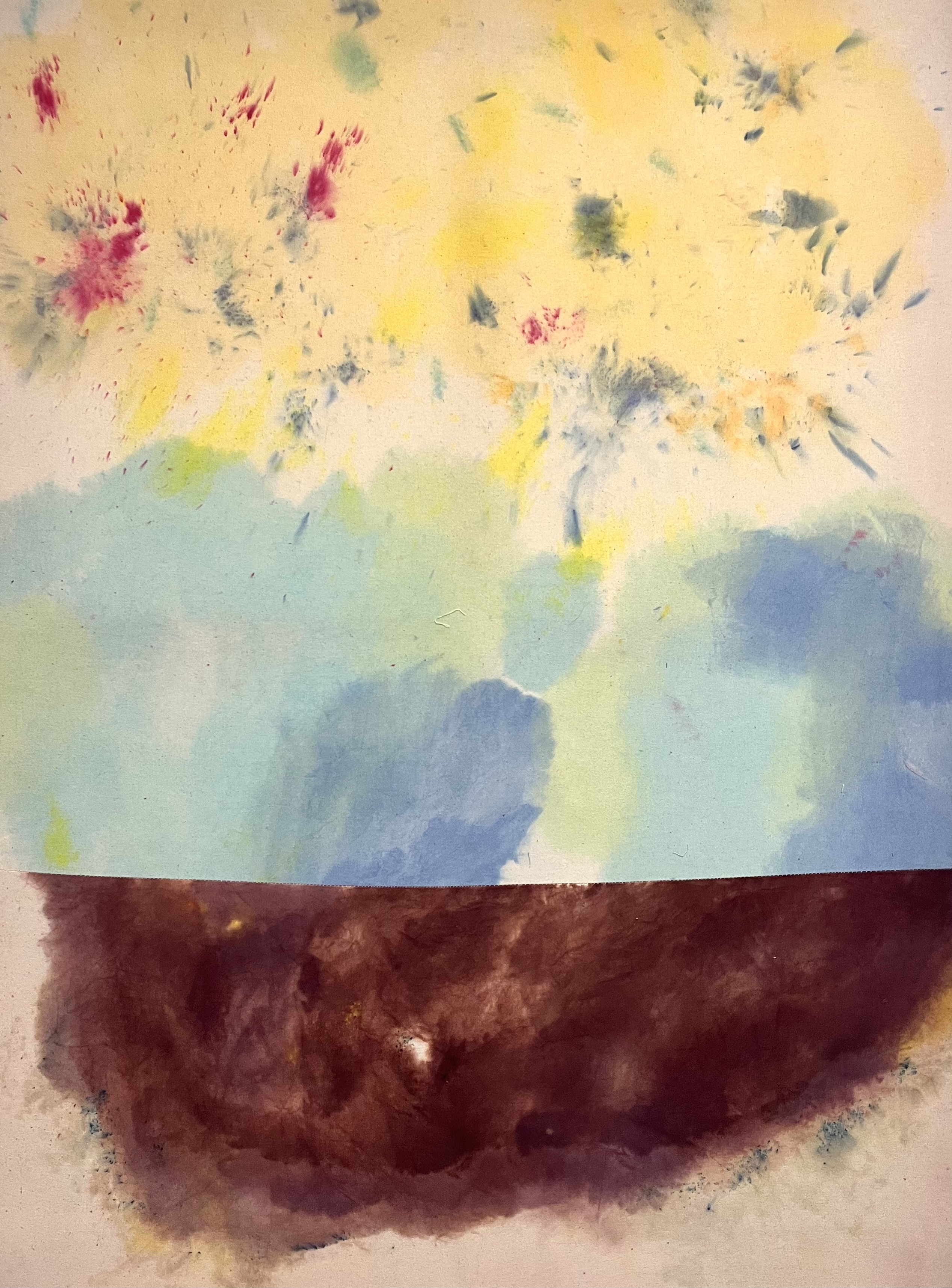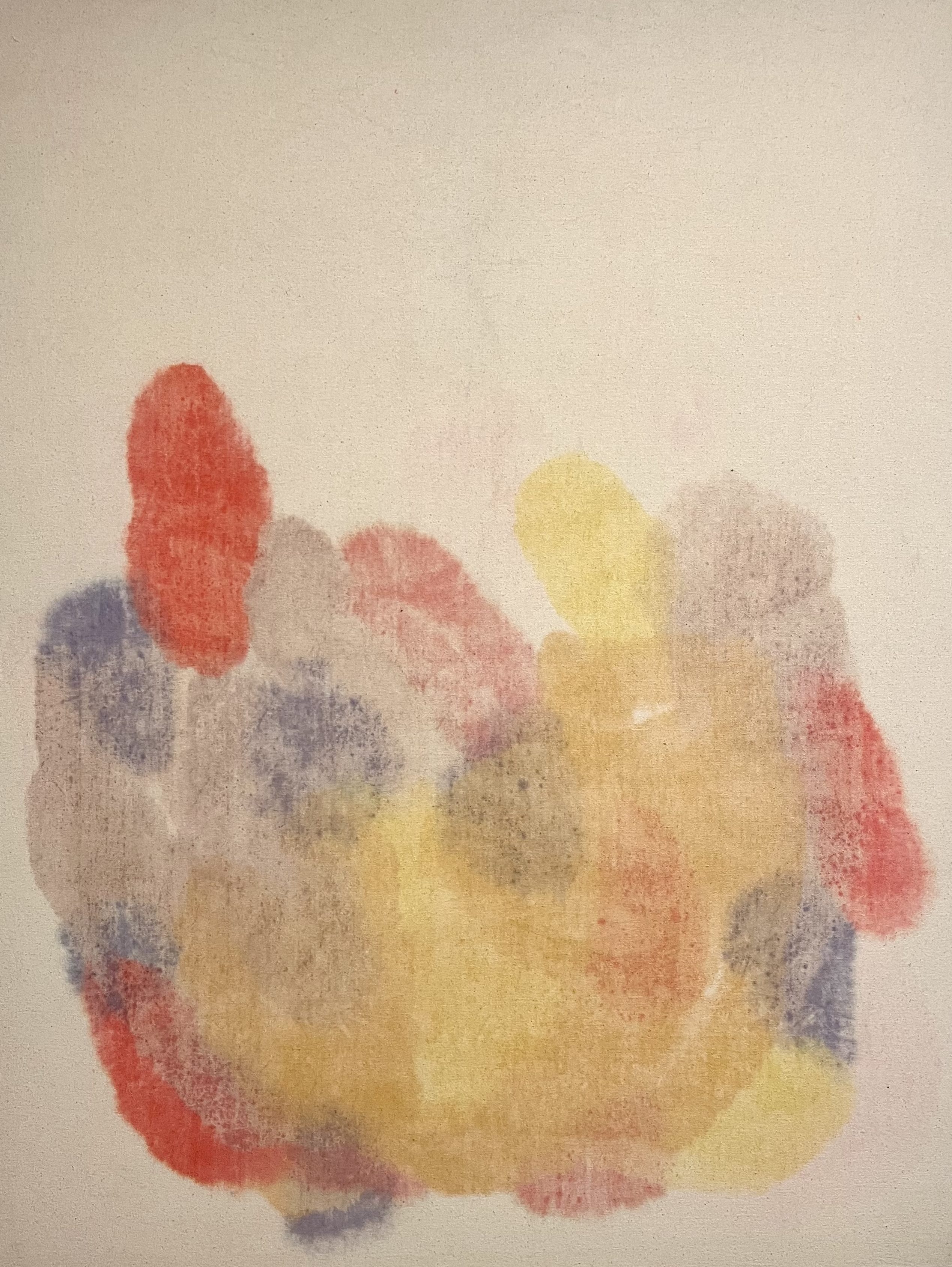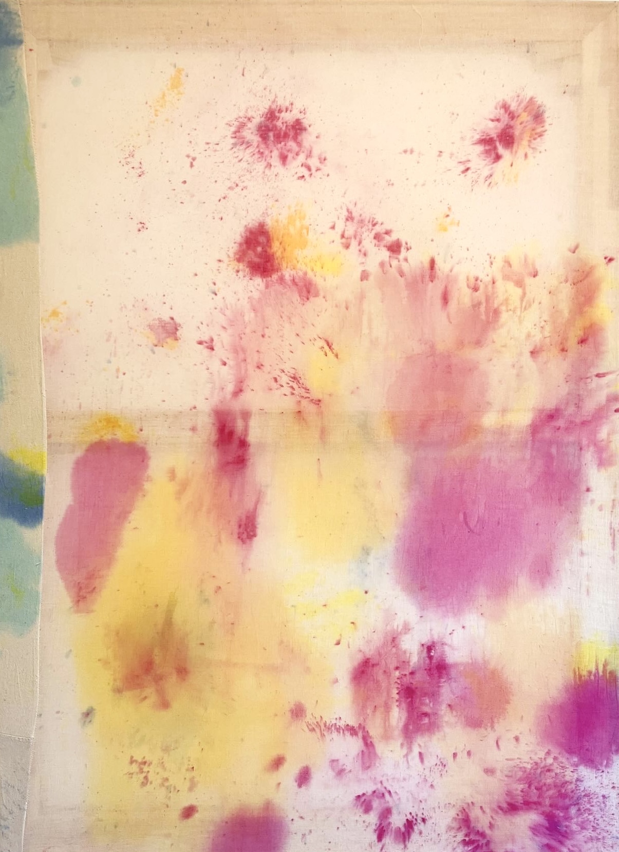 Somethinginside. Fabric dye and dynaflow on muslins and quilt batting, 50×75 cm, 2025.