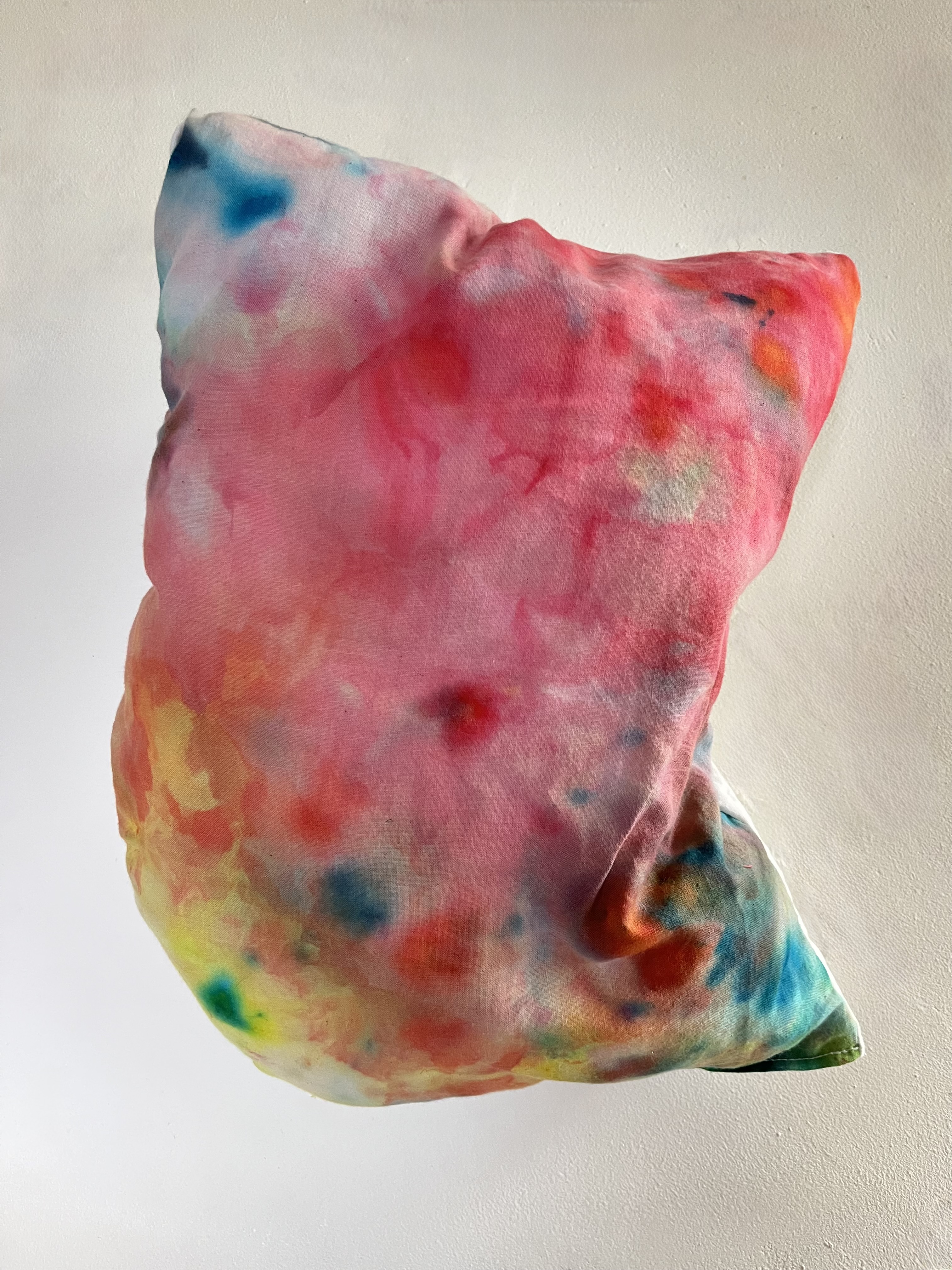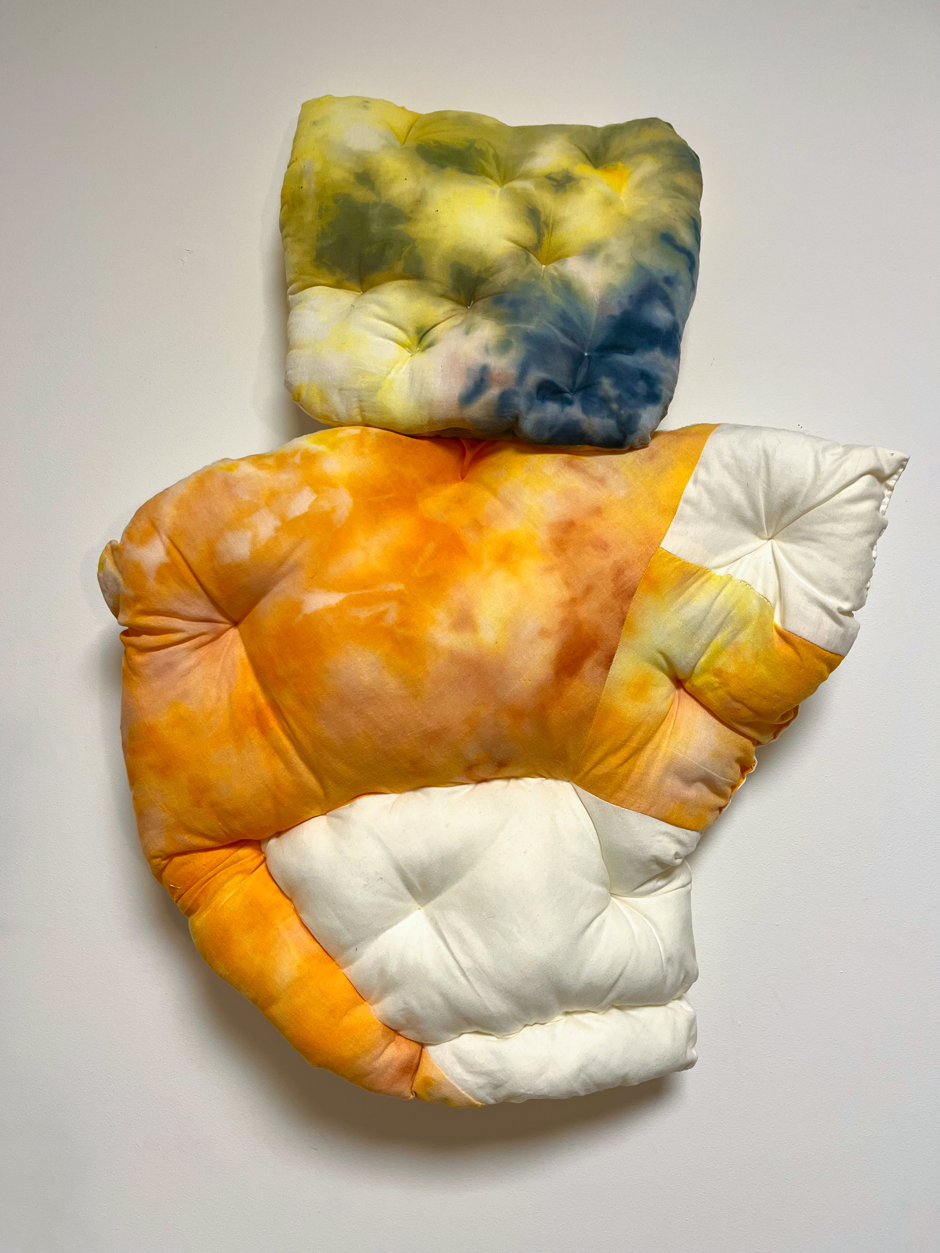 Untitled Hand dyed fabric and polyfill, 50×65 cm, 2024. Thank you for this life. Hand dyed fabric, polyfill and cotton thread, dimensions variable, 2025.